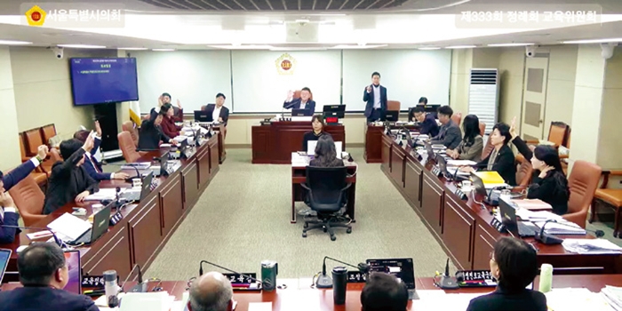 교육위는 ‘2025년 서울시의회 행정사무감사’ 종료일인 이날 감사를 마친 직후 바로 개최한 제333회 정례회 제4차 교육위원회에서 학생인권조례 폐지조례안을 상정해 거수 방식으로 진행한 표결에서 국민의힘 소속 박상혁, 이효원, 김경훈, 이종태, 이희원, 채수지, 황철규 시의원 등 7명의 찬성과 더불어민주당 소속 전병주, 우형찬, 이소라, 최재란 시의원 등 4명의 반대로 원안대로 가결했다. 이번 교육위원회 가결로 ‘서울학생인권조례 폐지조례안’은 본회의로 안건이 이관됐다. 그러나 서울시의회는 지난달 26일까지로 돼 있던 주민청구조례안 처리 기한을 넘겼다.