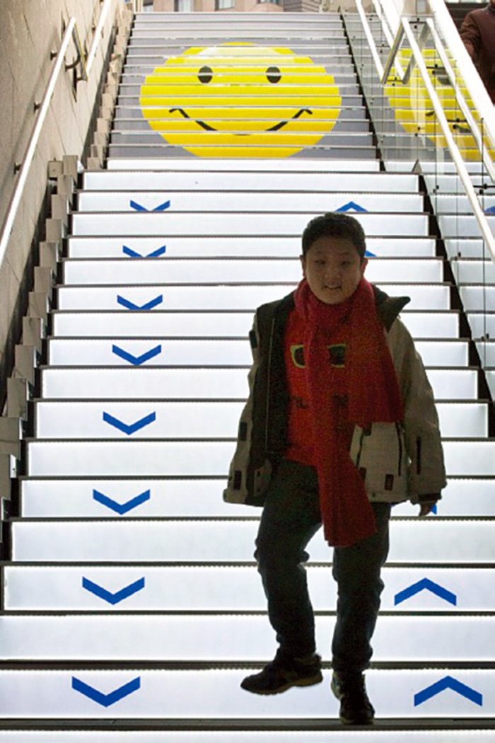 서울 중구 시청역에 설치된 ‘건강기부계단’을 한 시민이 이용하고 있다. 한겨레 자료사진