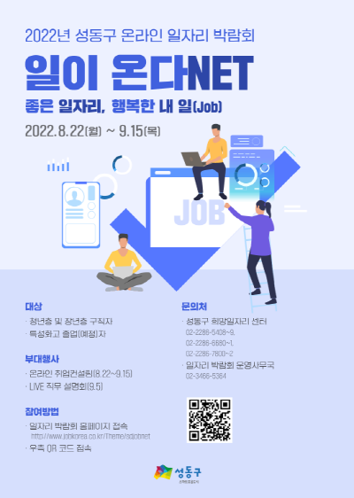 성동구가 22일부터 다음달 15일까지 온라인 일자리박람회 ‘일이 온다넷(NET)’을 연다.