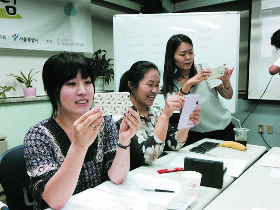 2 마을미디어 교육 모습. 스마트폰의 카메라 기능만 잘 익혀도 누구나 마을방송국을 열 수 있다.