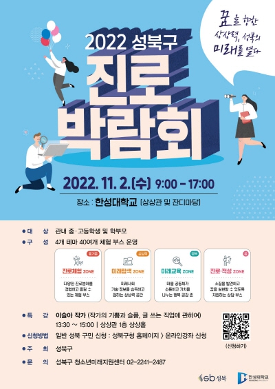 성북구가 다음달 2일 한성대학교에서 ‘2022 성북구 진로박람회’를 개최한다. 이번 진로박람회는 관내 중·고등학교 16개교 2000여명이 참석할 예정이다.