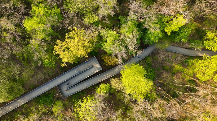 한편 걷기대회 개최지인 신정산둘레길(2.7km)은 신정산을 한 바퀴 순환하는 코스로, 이동에 불편을 느끼는 장애인, 어르신, 유모차 동반자 등의 보행약자도 편하게 숲을 둘러볼 수 있도록 경사도 8% 미만의 무장애데크길과 완만한 흙길로 구성돼 있다. 신정산둘레길 주변으로는 유아숲체험원, 대왕참나무숲, 시니어존, 야외무대 등의 시설이 연접해 있고, ‘미션추리프로그램 화중지남’ ‘숲 해설 및 유아숲프로그램’ 등 즐길 거리도 있다. 올해 4월 개통 이후 지금까지 이용객 80만명이 다녀갔다.