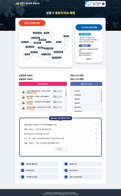 성동구가 태풍, 폭설 등 재난 발생 시 관련 정보를 모아 볼 수 있는 재난상황 안내 누리집을 마련했다.