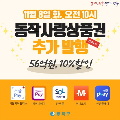 동작구 동작사랑상품권을 56억원 규모로 8일 오전 10시부터 발행한다.