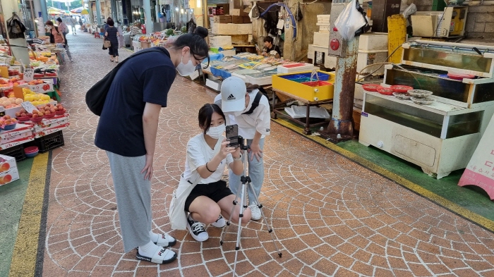 금천구 청소년들이 전통시장을 찾아 영상 촬영을 하고 있다. 금천구청 제공