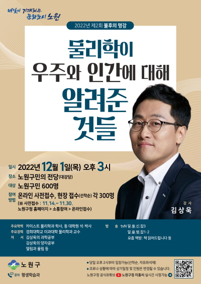 노원구가 물리학자 김상욱 교수와 함께하는 ‘불후의 명강’을 연다.