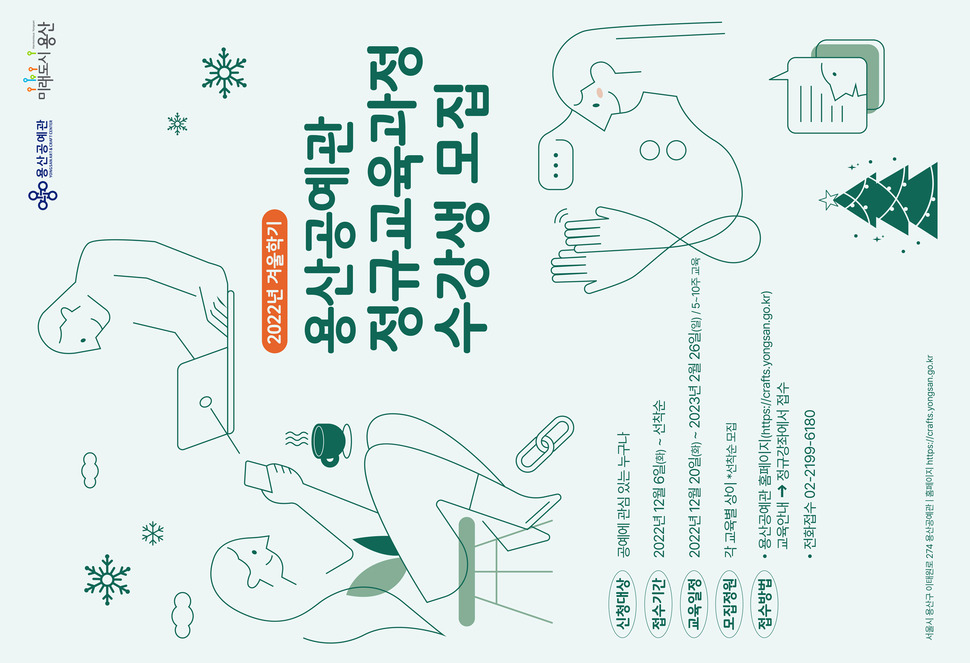 용산구가 ‘2022년 겨울학기 용산공예관 정규교육과정’을 개설하고 6일부터 수강생을 선착순 모집한다.