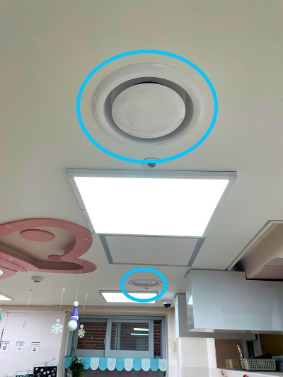 창문개방 없는 자동환기설비장치가 설치된 어린이집 천장 모습. 양천구청 제공