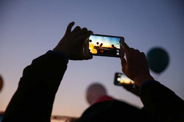 응봉산 해맞이축제에서 한 주민이 일출 사진을 찍고 있다. 성동구청 제공