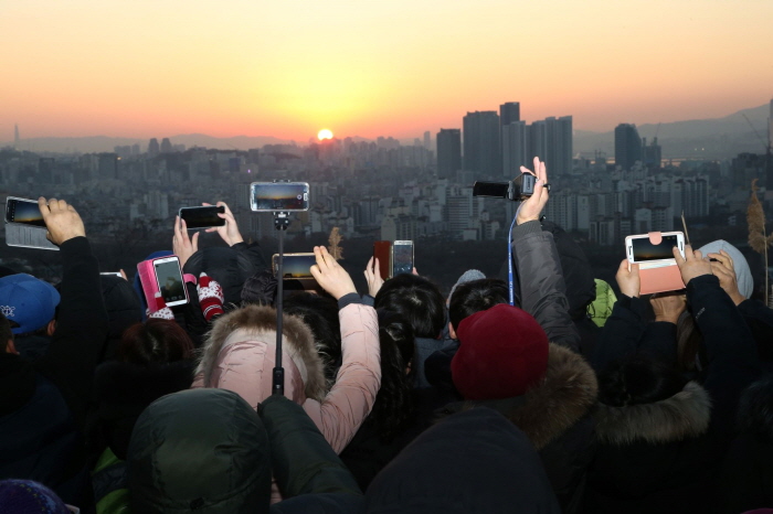 하늘공원 해맞이 축제에서 일출을 보고 있는 주민들 모습. 마포구청 제공
