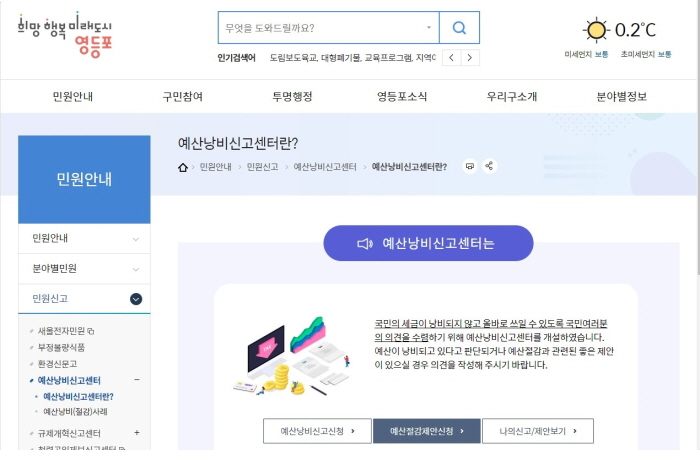 예산낭비신고센터 누리집 이미지. 영등포구청 제공