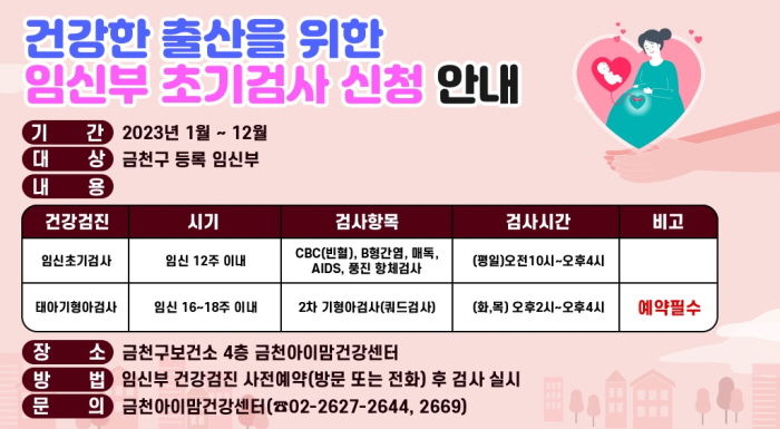 임신부 초기검사 홍보 이미지. 금천구청 제공