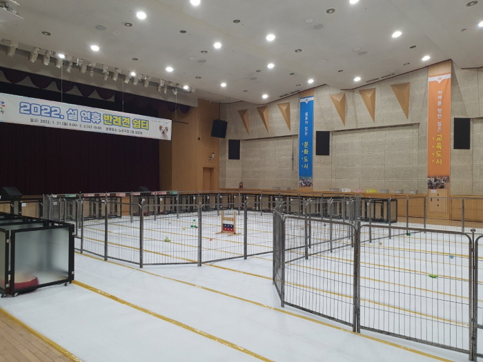 반려견쉼터는 21일부터 23일까지 노원구청 2층 대강당에서 운영한다. 쉼터는 크게 △놀이터 △호텔장 △홍보부스로 구성된다. 놀이터는 성별과 체급에 따라 공간을 분리해 내구성 좋은 철재 울타리로 설치된다.
