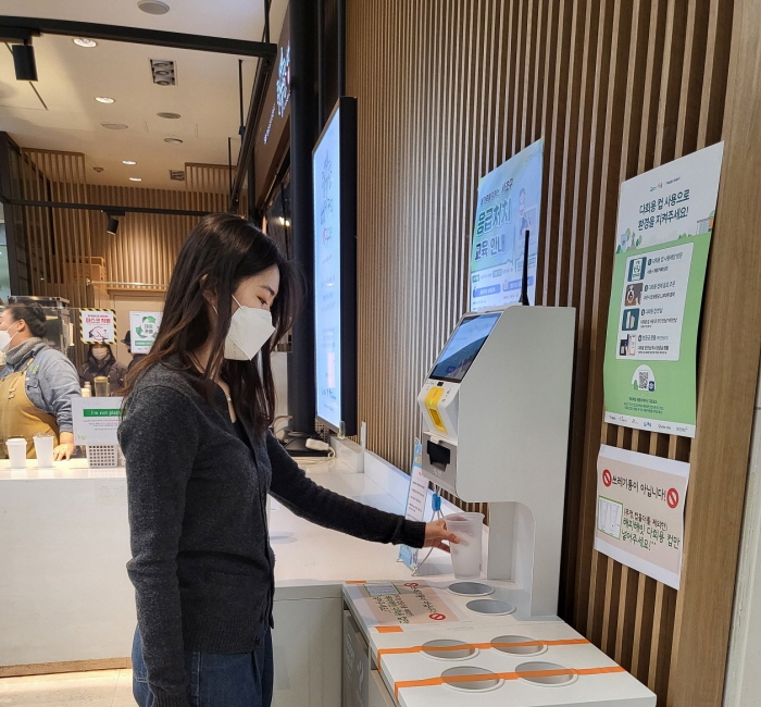서초구가 다회용 컵 무인반납기를 청사 로비 카페에 설치했다. 서초구청 제공