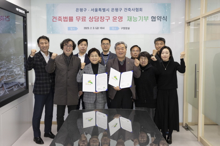 은평구 건축사협회와 무료 건축법률 상담 창구 운영 협약식 후 기념사진. 은평구청 제공