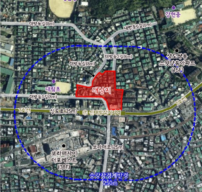 신대방삼거리역 북측지역이 7일 서울시 역세권 활성화 사업 대상지로 선정돼 ‘동작구형 정비사업’으로 본격 착수한다. 구는 이곳을 13년 걸리는 정비사업을 3년 이내로 단축하는 ‘동작구형 정비사업’의 시범사업으로 선정해 주민에게 제안, 지난달 25일 서울시에 사업 대상지 선정을 신청한 바 있다.