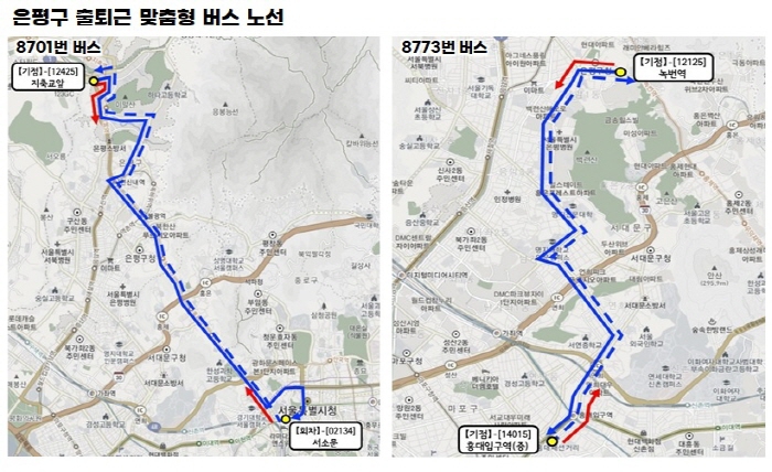 은평구에서 출퇴근 시간에만 다니는 맞춤형 버스 8701, 8773번이 운행을 시작했다. 이 버스는 출퇴근이 집중되는 평일 아침과 늦은 오후 시간대에 운행한다. 토·일요일과 공휴일에는 다니지 않는다.