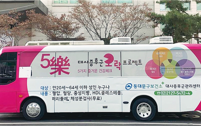 동대문구(구청장 이필형)가 새달부터 보건의료 접근성이 취약한 지역 주민에게 ‘찾아가는 건강관리 서비스’를 제공해오던 이동건강버스 운행을 재개한다. 구는 운영 재개에 앞서 ‘2021년 보건서비스 요구도 조사’ 결과를 바탕으로 이동건강버스 건강관리 서비스를 재정비했다. 이동건강버스는 대사증후군 검진과 상담, 알코올 분해 체질 테스트 등 절주 프로그램, 이동 금연클리닉, 신체활동·비만예방·영양관리 등 건강생활실천, AI·IoT 기반 어르신 건강관리, 치매 간이선별검사·상담, 우울·스트레스 관리 등을 무료로 제공한다. 이용 대상은 지역 65살 이상 어르신과 건강 취약계층 등이다. 자세한 사항은 동대문구보건소(02-2127-5405)로 문의하면 된다.