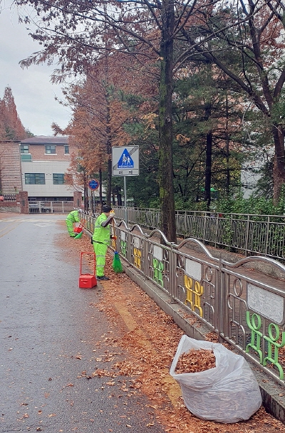 동작구 환경공무관이 거리에 떨어진 낙엽을 청소하고 있다. 동작구청 제공