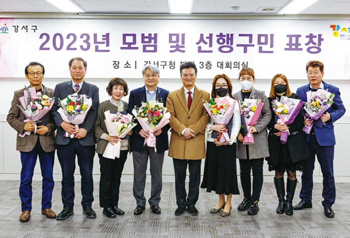 강서구(구청장 김태우)는 지역주민 화합과 발전을 위해 힘써온 구민 10명에게 모범·선행 구민 표창장을 전달했다고 28일 밝혔다. 화곡본동 김홍숙·서미선씨, 우장산동 강임선씨, 염창동 최병권씨는 학교폭력 예방 캠페인과 노인 미용봉사 등으로 표창을 받았다. 화곡본동 이광철씨는 취약계층 물품 지원, 화곡3동 신경옥씨와 발산1동 이광빈씨는 재능기부 활동과 나눔봉사 등으로 주민 화합과 따뜻한 지역사회 만들기에 앞장서온 공로를 인정받았다. 화곡8동 김창희씨는 범죄 취약지역 순찰, 여성안심귀가 활동 지원 등 각종 범죄예방 활동에 노력했다. 우장산동 손은주씨와 화곡3동 노순례씨는 환경지도와 에너지 절약 캠페인 활동을 높이 평가받았다.