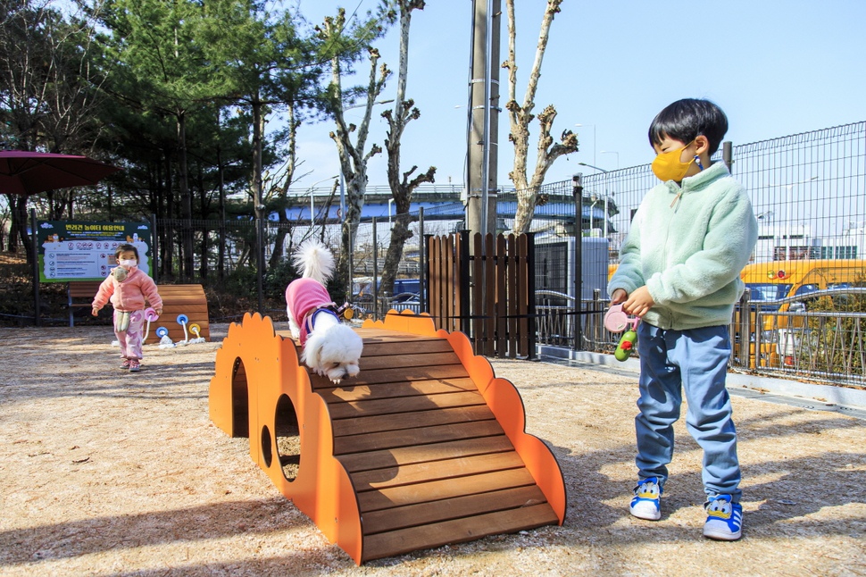 마포 댕댕이 놀이터에서 반려견과 함께 하고 있는 주민들. 마포구 제공