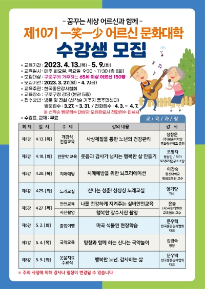 제10기 일소일소 어르신문화대학 수강생 모집 포스터. 구로구청 제공