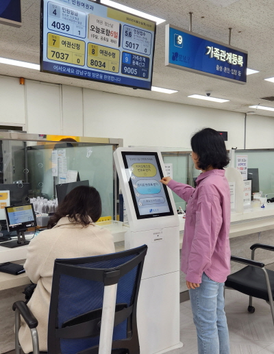강남구가 지난 21일부터 대기번호와 실기간 대기 현황을 알려주는 ‘카카오톡 알림톡 서비스’를 시작했다. 구청 민원여권과의 모든 창구 키오스크에서 휴대폰 번호를 입력하면 대기번호를 카카오톡으로 보내준다. 이후 대기 현황 중간 알림, 호출 알림 등 모두 3번에 걸쳐 알림톡을 보내주고 실시간 대기 현황도 확인할 수 있다. 카카오톡 미사용 이용자이거나 알림톡을 차단한 경우에는 문자서비스로 대체 발송되며 기존의 종이 번호표로 발권할 수 있다.