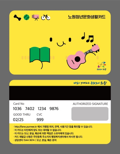 노원구가 서울시 자치구 최초로 지역 내 20대 청년들에게 1인당 연 10만원의 청년문화생활비를 지원한다. 청년문화생활비는 11월 말까지 사용 가능한 카드 형태로 지급된다. 공연‧전시 관람, 체육시설 이용 등을 할 수 있고 yes24, 인터파크, CGV 등 문화콘텐츠 온라인 플랫폼에도 이용 가능하다. 구는 점차 지역 내 오프라인 사용처도 확대해 나간다는 방침이다.