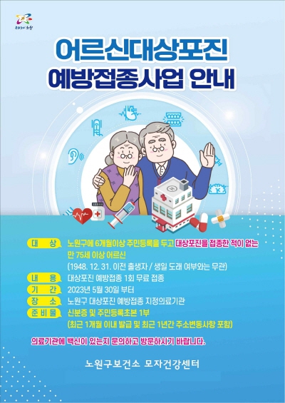 노원구가 어르신들이 무료로 대상포진 예방접종을 받을 수 있도록 지원한다. 구 관계자는 “대상포진은 적절한 치료법이 없어 예방접종이 필수다. 하지만 15만원부터 50만원이 넘어가는 비용이 부담스러워 접종을 포기하는 경우가 많다”며 “이에 구는 30일부터 만 75세 이상 어르신 대상 무료 예방접종을 시행한다”고 밝혔다. 올 4월 기준 노원구에 6개월 이상 거주하고 있는 만 75세 이상 어르신은 3만8621명이다.