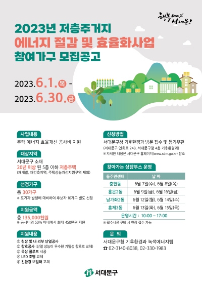 ‘저층 주거지 에너지 절감 및 효율화 사업’ 포스터. 서대문구청 제공