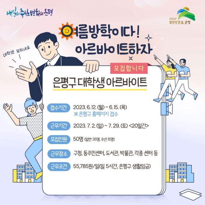 대학생 여름방학 아르바이트 모집 홍보물. 은평구청 제공
