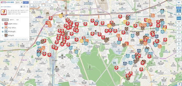 스마트서울맵은 행정정보를 위치정보와 연계해 활용하기 쉽게 만든 서울시 온라인 지도 플랫폼이다. 구는 이곳에 관내 상황별 대피소(민방위대피소·지진대피소·무더위쉼터·한파쉼터)의 위치를 누구나 알기 쉽게 시각화해 표기한다. 네이버·카카오 길찾기와 연계해두어 쉽게 찾아갈 수도 있다. 대피소에 따른 운영시간과 연락처를 볼 수 있고 수용인원이나 면적, 기타 안내 사항도 확인할 수 있다.