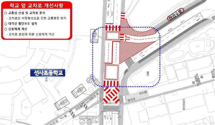 강동구가 어린이 통학로 안전을 위해 선사초등학교 앞 교차로를 재정비한다. 구 관계자는 “교차로 내부거리가 과도하게 길었고, 출퇴근 시 올림픽로를 이용하는 차량과 횡단보도를 건너는 학생들이 마주치고, 교차로 내 차량 정차 및 꼬리 물림로 교통사고 위험이 상존했다”고 말했다. 이 교차로는 지하철 8호선 연장(별내선) 공사구간에 속한다. 2017년부터 5년 이상 공사가 지속돼 어린이 통학과 안전확보에 많은 불편이 있던 실정이었다.