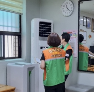 창5동 자율방재단이 무더위쉼터 냉방기기를 점검하고 있다. 도봉구청 제공