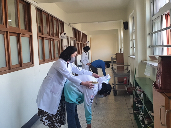 한편, 구는 지난 3월부터 3개월간 지역 내 40개교 5학년생 3855명에 대해 척추측만증을, 22개교 6학년생 2387명에 대해 거북목 증후군 검진을 마쳤다. 그 결과 척추가 정면에서 봤을 때 옆으로 굽은 척추측만증 유소견자는 192명에 중증이 31명이었다. 거북목증후군 검진에서는 479명이 일상 속 자세 교정이 필요했고, 그 중 3명은 거북목증후군이 의심됐다. 구는 전문 검진기관의 진단 영상 분석을 통해 개인별 결과지와 척추건강 예방 관련 전단지, 교육 동영상을 제공하고 중증 척추 측만증 학생 31명, 거북목증후군 의심 학생 3명을 대상으로는 전문 상담을 진행 중이다.