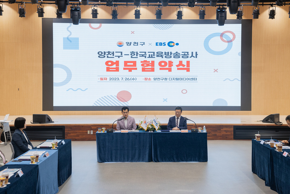 양천구가 26일 EBS와 ‘Y교육박람회 2023’ 공동 추진을 위해 업무협약을 맺었다. 이번 협약은 9월7일부터 9일까지 양천구에서 올해 처음 전국 규모로 선보이는 ‘Y교육박람회 2023‘의 성공적인 개최를 위해 두 기관이 긴밀하게 협력한다는 내용을 담았다.