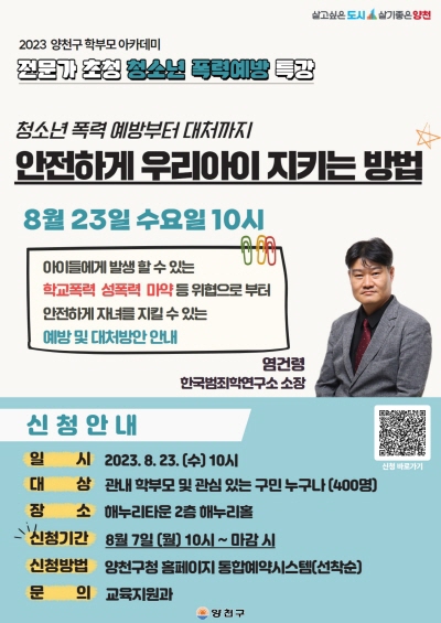 2023 학부모 아카데미 1강 청소년 폭력예방 교육 홍보 이미지. 양천구청 제공