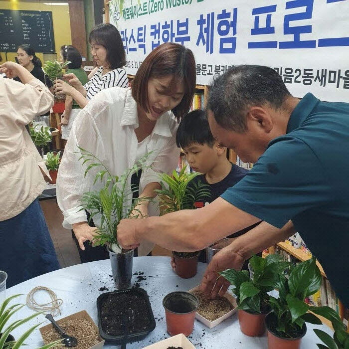 성북구 길음2동 새마을문고가 지난 11일 길음2동 북카페에서 제로웨이스트 행사를 진행했다. 북카페에서 사용하고 버려지는 일회용 플라스틱 음료 컵을 활용해 반려 식물 화분을 만든 것. 이날 행사에는 어린이부터 어르신까지 다양한 연령층의 주민 70명이 참여했다. 플라스틱 컵에 마사토와 배양토를 적정 배율로 배합해 담고 싱고니움, 테이블야자, 호야 등 실내 공기정화 식물을 심었다. 완성된 컵 화분을 주변 독거어르신에게 반려 식물로 전달했다. 더불어 길음 2동 주민자치회는 제로웨이스트 자원순환 프로그램으로 ‘장난감 리사이클링 장터’를 추진해 버려지는 장난감을 재활용하고 있다.