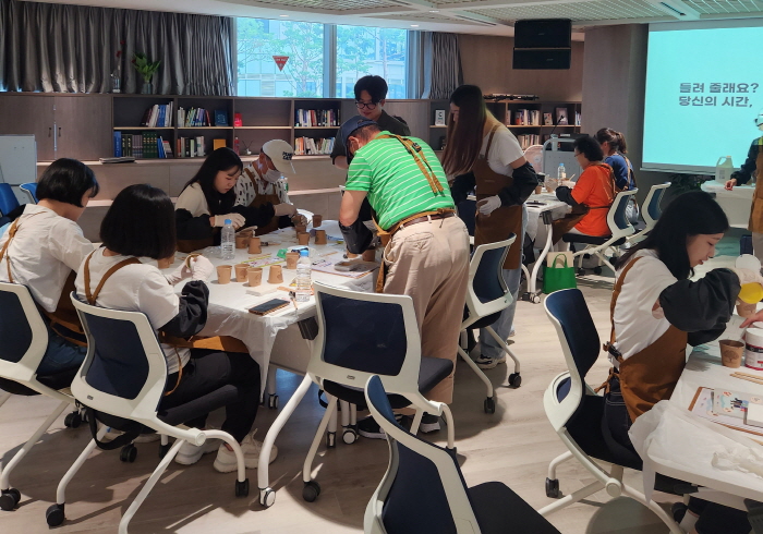 22일 멘토링 프로그램 참여 청년·어르신들이 미술 워크샵을 진행 중이다. 용산구청 제공