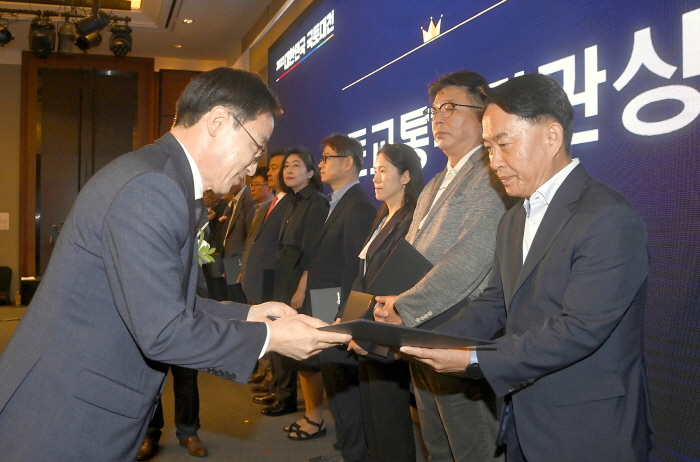 이성헌 구청장이 ‘2023 대한민국 국토대전’에서 경관행정(협업) 부문 최고상인 국토교통부 장관상을 수상하고 있다. 서대문구청 제공