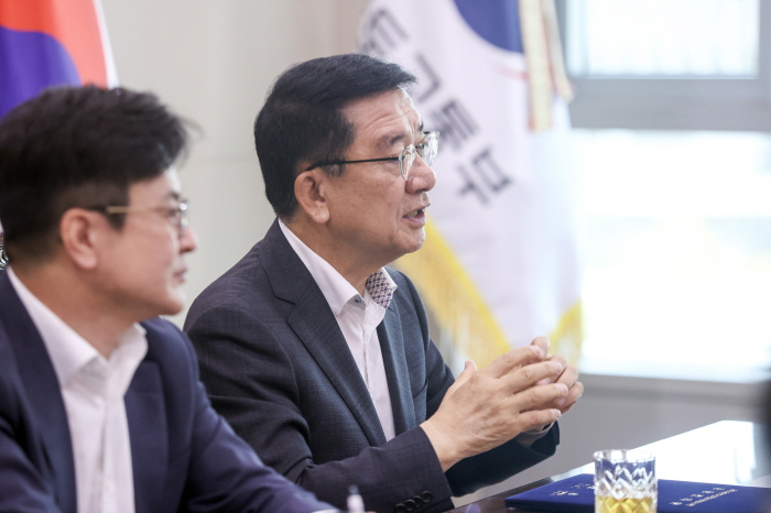 문헌일 구청장이 원희룡 국토교통부 장관과 면담하고 있다. 구로구청 제공