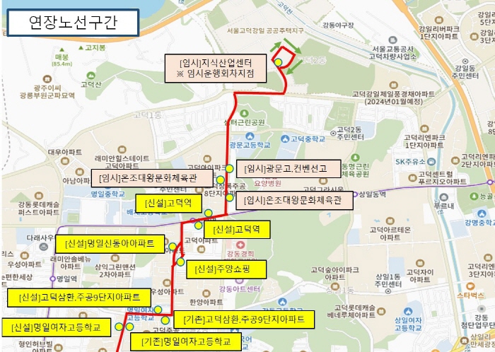 고덕비즈밸리의 마을버스 개통까지는 관내 대중교통 편의를 높이려는 구의 노력이 있었다. 명일동 한양아파트를 기점으로 강변역까지 운행하던 강동01번의 기존 노선을 고덕역을 경유하여 고덕비즈밸리까지 연장하는 노선을 서울시에 지속 건의해왔고, 지난 6월 서울시로부터 최종 연장 노선(안)으로 승인을 받았다.