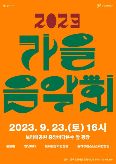 동작문화재단이 23일 오후 4시 보라매공원 중앙바닥분수 앞 광장에서 ‘2023 가을음악회’를 개최한다. 이번 음악회는 대중음악과 인디모던팝, 클래식, 팝페라, 성악 등 다양한 장르의 음악을 선보인다. 특히 오후 3시부터 시작되는 사전 공연에는 동작구 지역 청년예술인들로 구성된 동작 버스킹 공연팀이 출연한다.