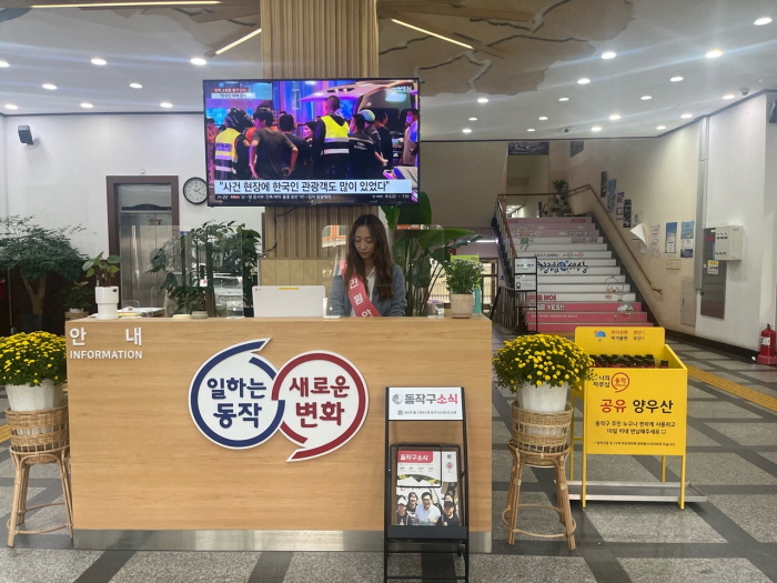 구청 1층 민원안내 데스크에 비치된 공유 양‧우산. 동작구청 제공