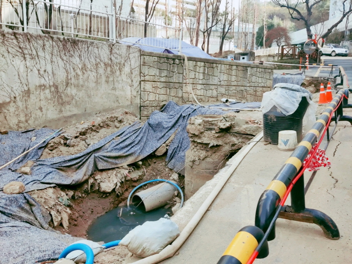 뿐만 아니라 도로 아래 매설된 배수관이 유실되면서 새어 나온 생활하수로 인한 웅덩이까지 생겨 주민의 안전을 심각하게 위협하는 상황까지 이르렀다.