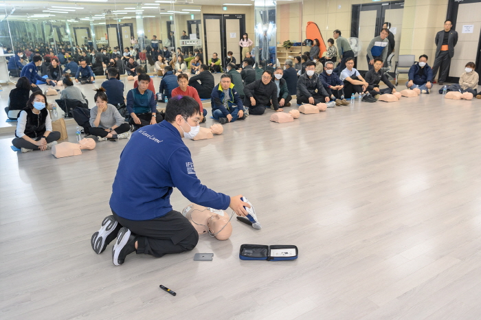 교육은 모두 5회 과정이며 다음달 6일까지 매주 수요일마다 회차당 40명씩 총 200여명을 대상으로 이론교육과 실습과정을 병행한다. 이론교육에서는 △자동심장충격기 소모품 및 제조일자 등 확인 방법 △매달 정기점검 및 통합응급의료정보인트라넷 결과 입력 방법 △심폐소생술 및 기도폐쇄처치술 등을 다룬다. 이어 의료인형 및 자동심장충격기를 활용한 심폐소생술 실습이 진행된다.