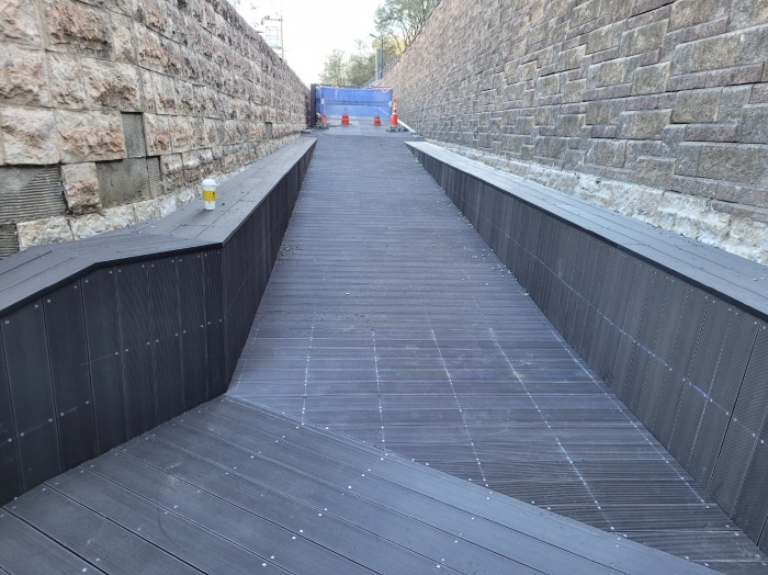 구는 지난 4월 안양천 진출입로 일부구간의 가파른 계단을 없애고 완만한 데크로드를 설치했으나 계단으로 된 하부 진출입로는 장애인과 유모차, 노약자 등이 이용하기가 불편해 시설을 개선해 달라는 목소리가 끊이지 않았다. 이에 구는 지난달 말 하부 진출입로의 계단을 철거하고 131m 규모의 데크로드 설치를 완료했다. 또 안양천 진출입로 주변으로 초화류, 관목 식재 등 7000㎡ 규모의 친수공간을 조성했다.