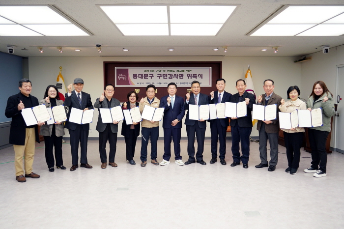 동대문구가 지난 11일 구청 5층 기획상황실에서 구민감사관 23명에 대한 위촉식을 가졌다. 구민감사관 제도는 열린 감사 참여로 공정하고 투명한 행정을 구현하고, 구민에게 구정 참여 기회를 제공해 불편사항을 개선하기 위한 제도다.