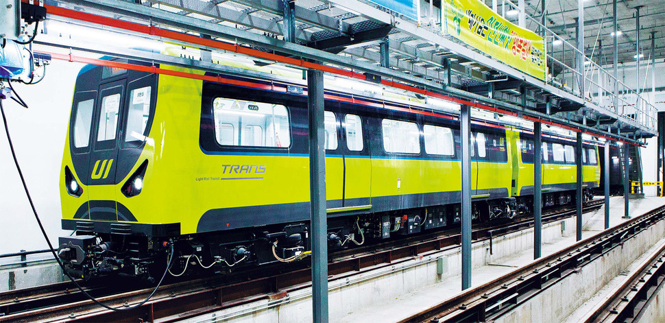 2017년 7월 말 개통 예정인 우이~신설 경전철의 시험 대기차량이 지난 16일 강북구 우이동 차량기지 검수고에서 점검을 받고 있다. 장수선 기자 grimlike@hani.co.kr