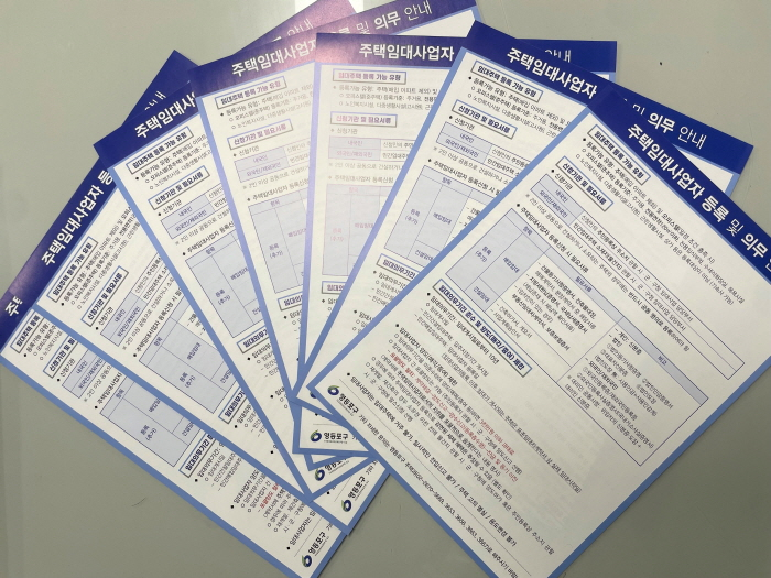영등포구가 잦은 법령 개정과 정책 변화로 현장에서 어려움을 겪고 있는 주택 임대사업자, 공인중개사를 위해 ‘주택 임대사업자 등록 및 의무’ 안내문을 제작해 배부한다고 밝혔다.